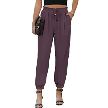 EVALESS Women's Stylish Linen Summer Casual Pants with Elastic Waist and Pockets