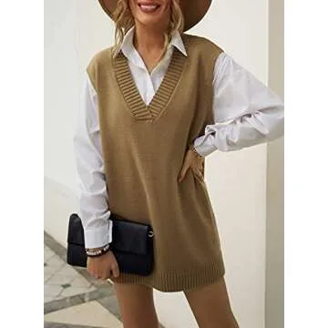 Show more This sleeveless V-neck knitted sweater vest top is crafted from skin-friendly, soft fabric that offers unparalleled comfort and breathability. With its loose and casual style, it fits all body shapes, making it an ideal addition to any wardrobe. The delightful design not only ensures a cozy feel but also enhances your charm, making it perfect for a variety of occasions.