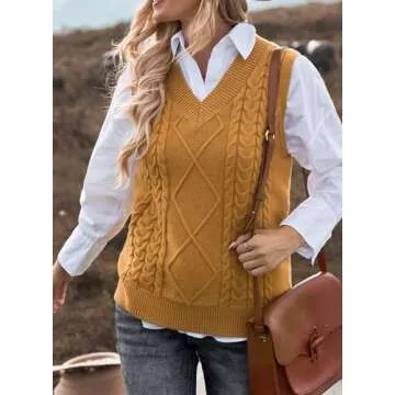 EVALESS Womens Plus Size Yellow Sweater Vest V Neck Sleeveless Fall Spring 2025 Sweaters for Women Cable Knit Solid Color Tops Loose Casual Soft Sweater Large