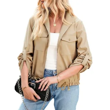 Introducing the EVALESS Women’s Zip Up Light Jacket, a must-have for any fashion-forward wardrobe. This versatile jacket features a chic apricot hue, perfect for both casual and dressed-up occasions. Its lightweight EVALESS construction ensures maximum comfort and durability, making it an ideal layering piece for any season. The roll-up long sleeves lend an effortlessly stylish vibe, while the stand collar and adjustable drawstring hem allow for personalized adjustments. With flap pockets...