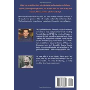 The book is authored by Grandmaster Perelshteyn and FIDE Master Solon, both of whom bring extensive knowledge and experience to the teaching of chess evaluation.