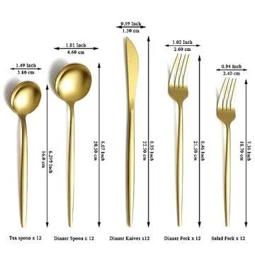 Evanda Gold Silverware Set 60 Piece Service for 12, Titanium Gold Plated Stainless Steel Flatware Set, Knives Forks Spoons Cutlery Set for Wedding, Parties, Birthday, Restauroom, Dishwasher Safe