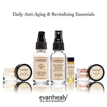 Show more The Evanhealy Skin Trinity is the ultimate travel-size skincare set designed to elevate your beauty routine. This exquisite collection features five must-have essentials for the perfect oil, water, and clay ritual. Each product is crafted with love, harnessing the rejuvenating power of natural ingredients. The set includes the Rose Cleansing Milk, an organic face wash that gently cleanses and refreshes your skin without stripping it of its natural oils. Followed by the Rose Geranium Facial Tonic HydroSoul, your skin will receive a much-needed boost of hydration and balance.