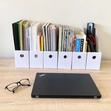 Evelots Magazine File Holder - Set of 12 White - Office Desk Organizer - Sturdy Cardboard - New Upgraded Double Front Panel for More Stability - Full 4 Inch Wide - Easy Assemble