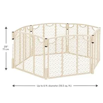 Show moreIntroducing the ultimate solution for parents and caregivers: the Evenflo Play Space! This versatile play space is designed to create a safe and spacious area for your little one to crawl, explore, and play comfortably. With an impressive dimension of over 18.5 square feet and a height of 28 inches, it ensures that your child has ample room to roam safely. The exclusive reversible legs come equipped with outdoor stakes for stability on lawns as well as non-scratch floor pads for any interior surface, making it perfect for both indoor and outdoor use.