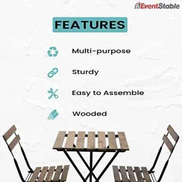 EventStable French Bistro Folding Table and Chair Set - Durable Wood Bistro Set for Outdoor Spaces
