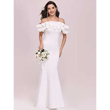 Ever-Pretty Off Shoulder Ruffle Sleeve Bodycon Party Dress Formal Dresses for Women White US6