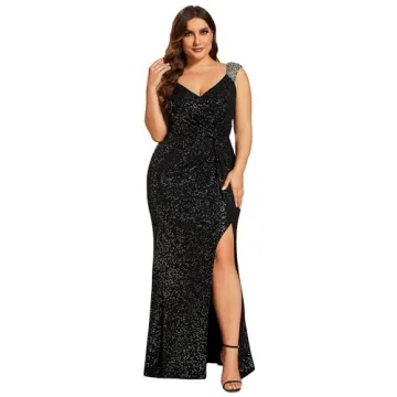 Step into a world of elegance and glamour with the **Ever-Pretty V-Neck High Slit Glitter Bodycon Ball Gown**. Designed specifically for the curvy woman, this stunning dress is a showstopper at any event, from fancy dinner parties to evening galas. The enchanting **glitter v-neck** and captivating high slit create a stunning silhouette that combines sophistication with a hint of allure.