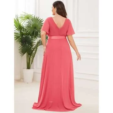 Ever-Pretty Women's Double V-Neck Chiffon Formal Dress, Plus Size Bridesmaid Dress in Coral, Size 22