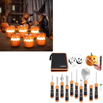 Prepare for a spooktacular Halloween this year with the EverBrite 6-Pack Halloween Pumpkin Lantern and HAUSHOF 20PCS Halloween Pumpkin Carving Kit. The EverBrite lanterns provide an enchanting glow that will brighten up your spooky decor, perfectly complementing the ambiance of scary movies or Halloween parties. Each lantern is crafted from durable materials meant to withstand the elements, ensuring that their vibrant jewelry-like colors stay bright. The HAUSHOF carving kit...