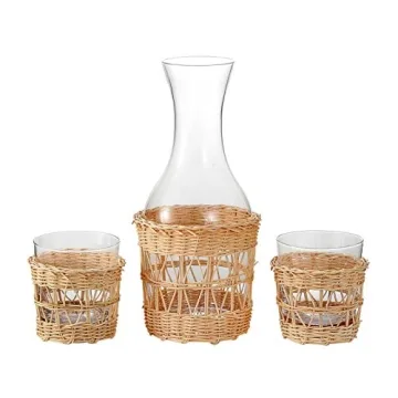 Show moreExperience the perfect blend of elegance and functionality with the EVEREST GLOBAL Exquisite Bedside Glass Carafe with Cups. Each piece in this stunning water pitcher set is hand-blown by skilled artisans, showcasing a delicate craftsmanship that elevates any room's aesthetic. Wrapped in pure hand-woven rattan, these glass items not only look beautiful but also serve a practical purpose, adding charm and sophistication to your bedside. Whether you're quenching your thirst at midnight or setting a stylish table, this set is designed to enhance your drinking experience.