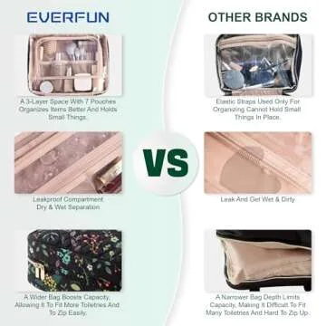 Show more If you’re looking for the perfect gift for the organized friend, the stylish traveler, or anyone who’s passionate about beauty and hygiene essentials, this multifunctional toiletry bag is a fantastic choice. Designed by EVERFUN, this bag excels in practicality and aesthetics. The structure features four spacious compartments with multiple pouches made to securely hold cosmetics and toiletries. With elastic bands designed to keep bottles upright, it's a savvy choice to ensure everything stays in place during travel.