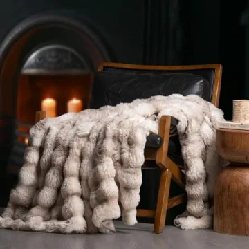 Soft Luxury Fluffy Ridgeline Faux Rabbit Fur Throw Blanket**. This