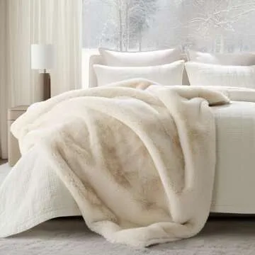 EVERGRACEHOME Luxury Soft Faux Chinchilla Fur Throw Blanket for Couch, Warm Thick Heavy Winter Throw Blanket 1220GSM for Bed, Fluffy Cozy Mink Blanket with Reversible Velvet, Arctic White, 60"x80"