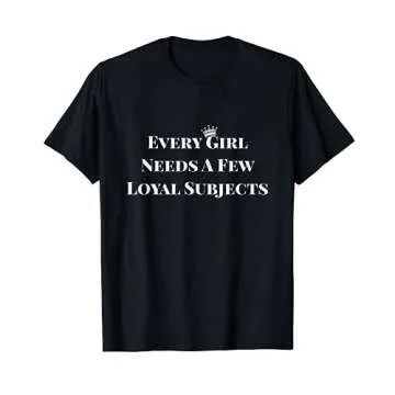 Show moreStep into royalty with the "Every Girl Needs A Few Loyal Subjects Yas, Queen T-Shirt"—the perfect blend of fun and fashion! Featuring a playful crown design that boldly proclaims your royal highness, this novelty t-shirt is designed for every queen at heart. Made from soft, lightweight fabric with a classic fit, it ensures you feel as fabulous as you look. The double-needle sleeve and bottom hem provide durability, making this t-shirt not just a statement piece, but also a long-lasting addition to your wardrobe.