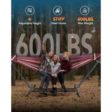 This hammock is not just about comfort; it boasts an anti-rollover wooden frame design featuring uniform hole spacing and balance spreader bars. This unique design helps ensure safety and stability, allowing you to enjoy a peaceful nap or a sunny afternoon of reading while feeling secure. Its impressive 600-pound weight capacity can easily accommodate two people, making it ideal for family outings or intimate moments with a loved one.