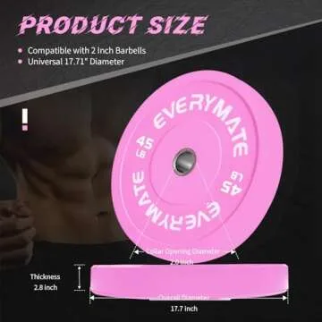 With an IWF standard size of 450 mm (17.72 inches) and varying thickness based on weight, our professional-grade bumper plates are perfect for all types of training, including strength training, weightlifting, and crossfit. Every aspect of the EVERYMATE weight plates has been meticulously crafted to support your fitness journey.