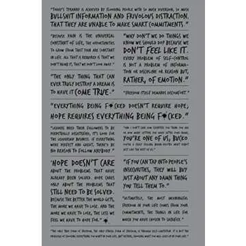 The emotional core of this book is strong; it emphasizes the importance of hope in navigating adversity. Manson asserts that while we cannot always control our circumstances, we can control how we interpret and respond to them. This empowering message encourages readers to not only seek self-improvement but also to foster positive change in the world around them.