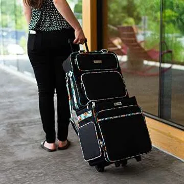 Show more Introducing the ultimate solution for crafters – the Portable Rolling Craft Case by The Difference For Crafters. This stylish and practical tote cart bag is a game-changer for anyone who loves to scrapbook or craft on the go. Engineered with the everyday crafter in mind, this case offers a locking handle that ensures all your supplies are secure during transport. Constructed from high-quality, durable polyester, it’s designed to withstand everyday use and keep all your crafting items organized and accessible.
