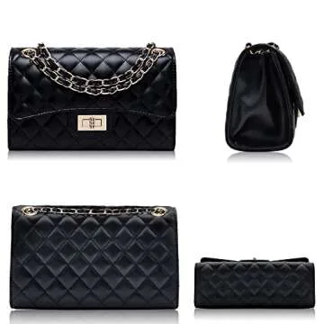 Eveupp Black Chain Purse Small Quilted Crossbody Bags for Women Shoulder Bag Clutch Purses M