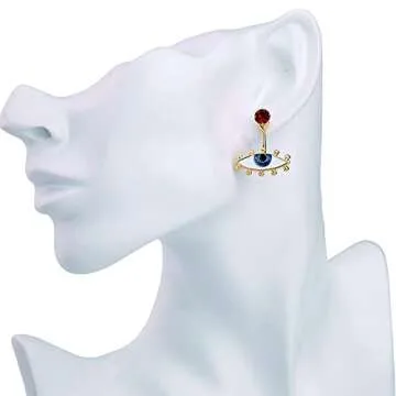 Evil Eye Earrings Red Rhinestone Dangle Drop Studs
