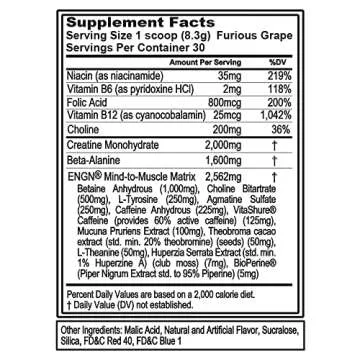 Evlution EVL Intense Pre Workout with Creatine - ENGN Energizing Pre Workout for Men Powder Drink for Lasting Energy Focus and Recovery - with Beta Alanine Caffeine and L Theanine - Furious Grape