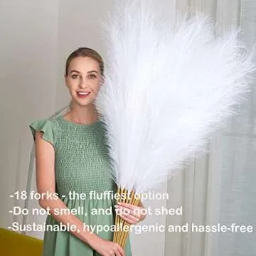 EVODIS Pampas Grass Decor Tall, 43"/110cm Faux Pampas Grass 6 Stems Large Pompass Grass Branches Tall Bulk Boho Flower Arrangement for Home Room Wedding Party Decor (White)