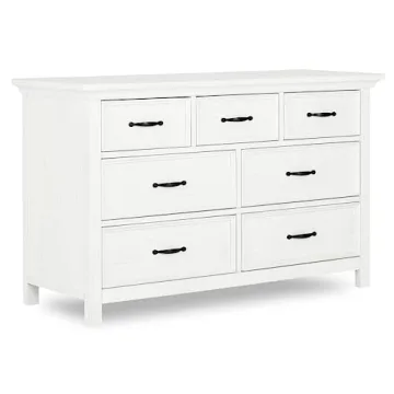 The Belmar Double Dresser boasts seven spacious drawers that provide ample storage for everything from adorable onesies to your favorite clothing and accessories. Each drawer is meticulously designed with five-piece independent boxes and English Dovetail joints, ensuring durability and ease of use. You’ll appreciate the smooth operation of the heavy-duty, side-mounted 3-tier full-extension glides, allowing you to effortlessly access even the deepest corners of the dresser.