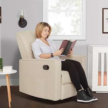 Evolur Raleigh Glider in Shell, Upholstered Plush Seating 360° Swivel Glider Rocking Chair, FSC Certified, Greenguard Gold & JPMA Certified Nursery Glider Recliner