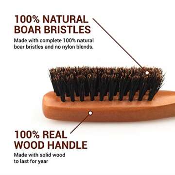 Evolve 100% Boar Bristle Hair Brush, Best Brush for Pocket / Purse / Travel Size, Distribute Natural Oil & Stimulate Scalp, Medium Firmness, Great for Beards