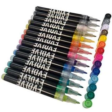 Introducing the Evolve E20 Water Based Acrylic Paint Marker Set, a carefully curated collection of 14 premium markers designed for artists, crafters, and anyone who appreciates the art of self-expression. Each marker features a waterproof permanent ink, ensuring your creations remain vibrant and intact, whether they're on paper, canvas, or other surfaces. The extra fine round nylon nibs deliver unparalleled precision, allowing you to create delicate lines...