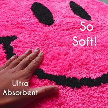 Show moreStep into a delightful blend of comfort and whimsy with the Evovee Hot Pink Bath Mat Rug. This charming and vibrant mat will instantly brighten up any bathroom or bedroom, making it a perfect addition to your decor. Designed with a playful retro funky aesthetic, it adds a splash of happiness every time you enter the room. Measuring at a generous 25 inches in diameter, it perfectly balances style and function, ensuring that you feel pampered while keeping your feet warm and cozy. With its fun and quirky design, it’s not just any rug; it’s a memorable gift that will surely bring a smile to anyone's face. Whether for a housewarming, birthday, anniversary, or Christmas, this bath mat is the ultimate way to share some joy with your loved ones.