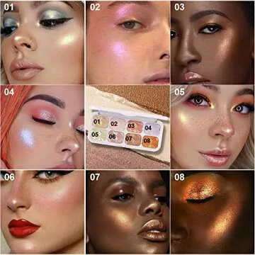 Show more Introducing the ultimate beauty must-have that will elevate your makeup game to a whole new level! This exceptional Multi-function Brightening Palette features a stunning array of 8 shimmering highlight powders infused with micro-pearl, designed to illuminate and contour every angle of your face. Whether you're looking to brighten your cheekbones or enhance your collarbone, this palette delivers a flawless finish that is both easy to apply and long-lasting. The finely milled powders glide on effortlessly, providing a natural glow that transforms your makeup look instantly.