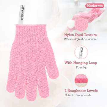 Evridwear Exfoliating Gloves for Shower, 100% Nylon Thick Soft Medium Heavy Bathing Gloves Dead Skin Remover Body Scrubber Smooth Skin with Hang Loop, 1 Pair Moderate Pink