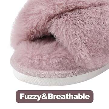 Show moreStep into unparalleled comfort and style with the Evshine Women's Fuzzy Slippers. This unique pair features a breathable open-toe design paired with a trendy faux fur upper that elevates any casual look. Not only are they visually appealing, but these slippers are also designed for practicality, easily sliding on whenever you seek comfort. Whether you're lounging at home or stepping out to grab the mail, these slippers are your go-to choice for relaxation.
