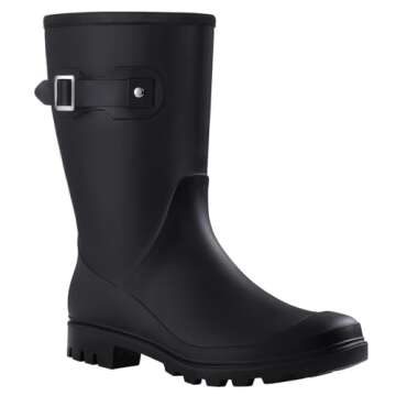 Evshine Women's Mid Calf Rain Boots Waterproof Garden Shoes Matte Black, 38