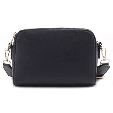 EVVE Crossbody Bags for Women Trendy Triple Zip Small Crossbody Camera Bag Purse with Wide Guitar Strap | Black