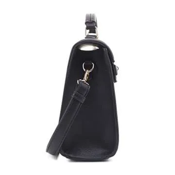 EVVE Women's Top Handle Satchel with Detachable Strap Small Pebbled Leather Crossbody Bag_BLACK