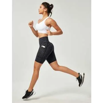 Ewedoos Biker Shorts Women Tummy Control Workout Shorts with 3 Pockets High Waisted Compression Gym Running Yoga Shorts Women Charcoal