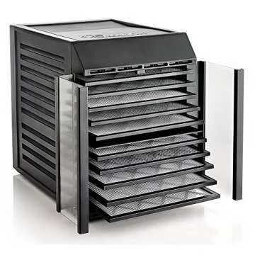 Show more Discover the ultimate culinary companion with the Excalibur Food Dehydrator, a brand renowned for its innovative and quality kitchen appliances. This dehydrator features a remarkable capacity with 10 trays, providing an impressive 9.3 square feet of drying space ideal for dehydrating fruits, meats for jerky, herbs, nuts, and so much more. Say goodbye to wasted produce and hello to healthy snacks with just the right amount of crunch!
