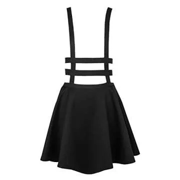 EXCHIC Women's Braces Skirt Pleated A-Line Suspender Mini Skirt - Cute Goth Style