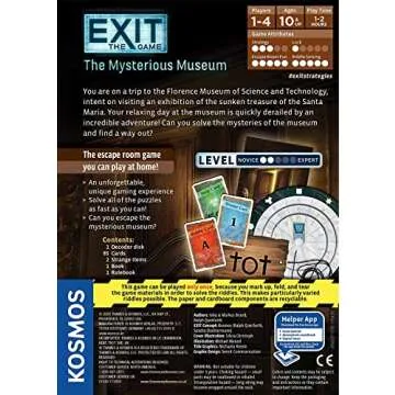 Show moreAre you prepared to embark on a thrilling adventure without leaving the comfort of your home? Introducing the 'Exit: The Mysterious Museum', a captivating card-based escape room game designed for families and friends alike. Get ready to immerse yourselves in a mysterious storyline where players find themselves trapped in a museum's enigmatic exhibit, utilizing teamwork, creativity, and critical thinking to solve intricate puzzles and unveil hidden secrets. This engaging game offers a fresh take on the escape room experience, ensuring you can enjoy the thrill of puzzle-solving without the high costs associated with traditional "brick and mortar" escape rooms.