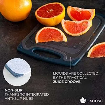 When compared to other cutting boards on the market, the Exitoso Cutting Board Set distinguishes itself with its thoughtful design and practical features. While many boards may claim to be non-slip, the Exitoso boards feature unique rubber feet that ensure a firm grip on your countertop, providing safety during high-traffic kitchen tasks. Furthermore, the inclusion of a juice groove is a rarity among many inexpensive options, making cleanup simpler and the cooking process less messy. The durability of the plastic coupled with its dishwasher safety ensures that these boards stay in top condition over time, significantly outperforming others that may warp or discolor after cleanings.