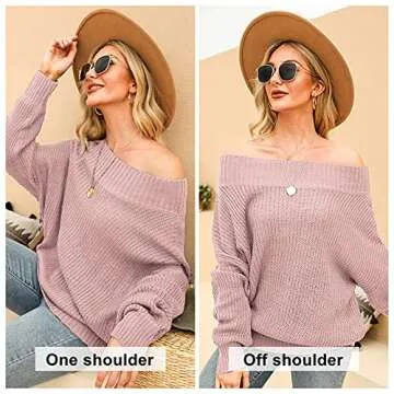 EXLURA Off Shoulder Sweater Batwing Sleeve Loose Oversized Pullover Pink