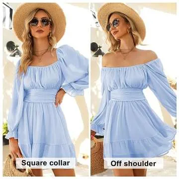 This dress features a romantic square neck and long lantern sleeves, capturing a vintage charm that resonates with fashion-forward individuals. The above-knee length adds a playful touch, while the ruffled hemline provides a whimsical flair perfect for spring, summer, fall, and even early winter. With its slim fit and A-line shape, it effortlessly combines style and comfort, making it a wardrobe staple.
