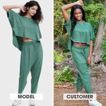 Show moreIntroducing the EXLURA Women's Summer 2 Piece Outfits set, an ideal choice for those seeking both comfort and style in their leisurewear. Crafted from a premium blend of 35% rayon, 60% polyester, and 5% spandex, this loose pajama lounge set feels incredibly soft against the skin while providing just the right amount of stretch for unrestricted movement. Its lightweight fabric ensures breathability, making it perfect for warm summer days. With a classic short sleeve crew neck pullover top and high waist drawstring jogger pants, this set is designed to fit true to size with an effortlessly chic oversized silhouette that flatters all body types. Available in a variety of vibrant color options, you can easily mix and match for a fresh, fashionable look every day.