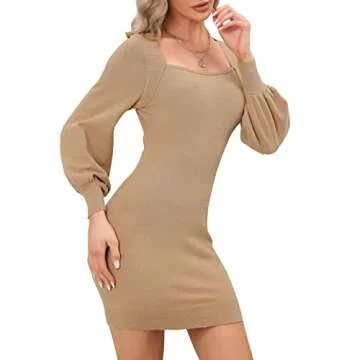 Introducing the EXLURA Women's Tie Back Bodycon Sweater Dress, an exquisite blend of style and comfort, designed for the modern woman who seeks to make a statement. This captivating dress features a flattering square neck and an enchanting backless design, adorned with a chic rear fastening tie for personalized adjustments. The voluminous lantern sleeves exude elegance while the ribbed knit cuffs add a touch of texture. Crafted with a form-fitting silhouette, this bodycon...