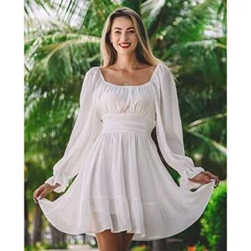 The elastic high waist provides ease of wear, ensuring that you can transition from day to night effortlessly. The lantern sleeves with elastic cuffs add a touch of romantic flair, making it perfect for a first date, a wedding, or even a casual outing with friends. Not only does the above knee length add a dose of modern chicness, but the A-line cut also allows for free movement, making it suitable for dancing the night away.