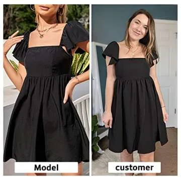 EXLURA Womens 2024 Casual Short Sleeve Square Neck Cap Sleeve Dress High Waist A-Line Summer Smocked Back Mini Dresses