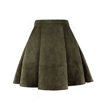 Show moreIntroducing the EXLURA Women's Faux Suede High Waist A-line Basic Stretchy Flared Casual Mini Skater Skirt, the perfect addition to your fall and winter wardrobe! Crafted from luxurious faux suede, this mini skirt combines style and comfort seamlessly. The high waist design accentuates your figure while providing a flattering silhouette. It's versatile enough to be paired with your favorite tops and can be dressed up or down depending on the occasion. Not only does it provide a chic look, but its stretchy fabric ensures easy movement, making it an ideal choice for fashionable, active women.